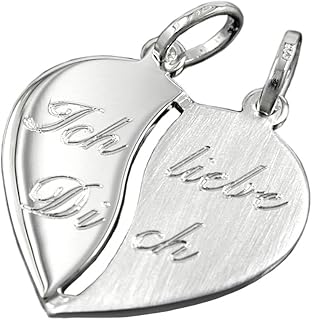 Kettenanhänger Silberanhänger für Halskette Unisex Partneranhänger Herz mit 2 Ösen Ich liebe Dich 925 Silber 18 x 17 mm inkl. kleiner Schmuckbox