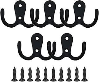 6 Stück Doppelzinken-Kleiderhaken, starke Doppel-Kleiderhaken, Metall-Doppelwand- und Türhaken mit Schrauben, Chrom-Doppel-Kleiderhaken zum Aufhängen von Mantel, Kleidung, Robe Schlüssel, schwarz