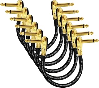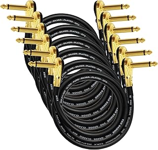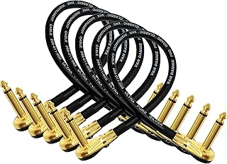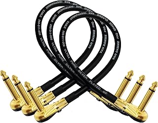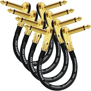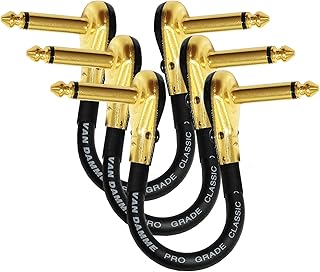 Van Damme Pro Grade Classic XKE Patchkabel für Gitarre, Bass, Effektinstrument, hochwertig, ultraflexibel, abgeschirmt, hochwertig, vergoldet, flaches Profil, rechtwinklige Pancake-Anschlüsse Typ TS (6,35 mm), 6 Stück 91 cm