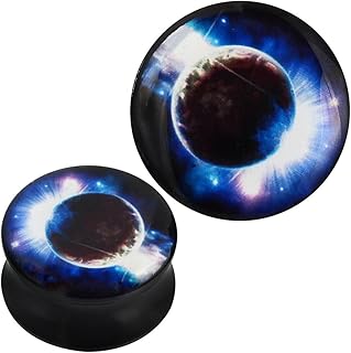 Plug Acryl Planet All weiß blau schwarz Piercing Ohrschmuck