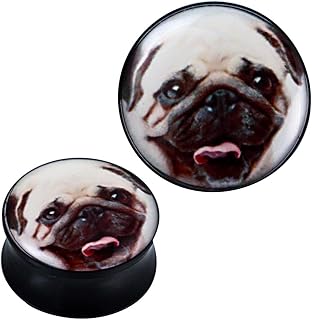 Plug Acryl Mops Gesicht Foto schwarz Piercing Ohrschmuck