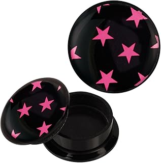 Schraub Plug Acryl schwarz pink Sterne Piercing Ohrschmuck