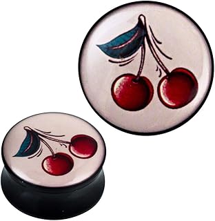 Plug Acryl rot grün Kirschen Kirschenpaar schwarz Piercing Ohrschmuck