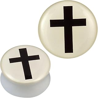 Acryl Plug weiß Creme schwarz Kreuz Piercing Ohrschmuck