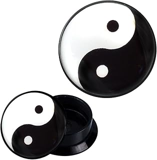 Schraub Plug Acryl schwarz weiß Yin Yang Piercing Ohrschmuck