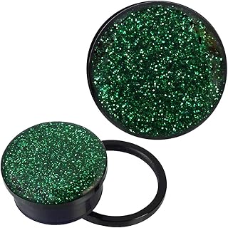 Schraub Plug Tunnel Acryl schwarz grüner Glitzer Piercing Ohrschmuck