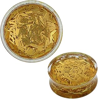 Plug Gold Glitzer Streifen Acryl transparent Tunnel Expander Piercing Ohrschmuck