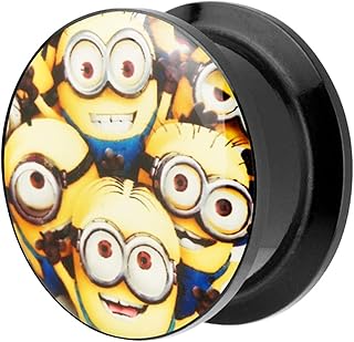 Ohr Plug Flesh Tunnel Piercing Ohrpiercing Schraub Schraubverschluß Picture mit Minions Comic Motiv