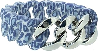 Hanse-Klunker Armband Damen ORIGINAL Silikon Muster Leopard Jeans, Edelstahl Silber Frauen Mädchen Größe 18-19 cm inkl. Schmuck-Geschenk-Box