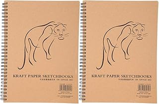 VEESUN Skizzenbuch din A4 2 STK, Zeichenblock Kunst Spirale 30 Blatt, 160GSM Leerseite Skizzenbuch, Kraft Cover Zeichenbuch Kunstbuch für Erwachsene Kinder, Geeignet Bleistift Aquarellstift, MEHRWEG