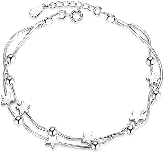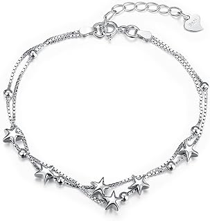 Damen Armband Elegant Perlen 925 Silber und Sterne Double Layered Armkettchen mit 925 Sterling Silber Armband Armkette Schmuck Verstellbar Modeschmuck Armbänder Liebe Armbänder mit Schmuckverpackung