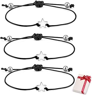 Feelairy 3 Stück Armband Damen Silber Freundschaftsarmband für Mädchen Frauen, Verstellbar Stern Armband Dünn Seil Armbänder Handgemacht Armkette Geschenk für Geburtstag Weihnachten