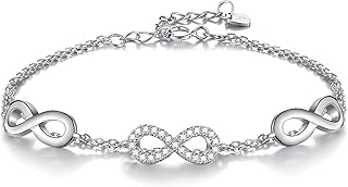 Infinity Armband Damen 925 Sterling Silber, Unendlichkeit Herz Armbänder Kristallen Verstellbar Armkette Valentinstag Muttertag Geburtstags Weihnachten Geschenk für Sie Frauen Freundin mama
