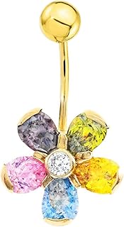 Piercing für Nabel Multicolor Blume 6x4 - Gelbgold 9 Karat (375)