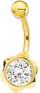 Piercing für Nabel blume Zirkon 7 mm - Gelbgold 9 Karat (375)