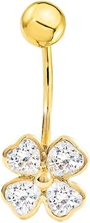 Piercing für Nabel Klee mit Zirkonen - Gelbgold 9 Karat (375)