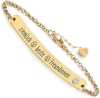 Damen Gravur-Armband mit wählbarem Familien- und Freunde-Spruch | Freundschaftsarmband - Gold - ziemlich Beste Freundinnen