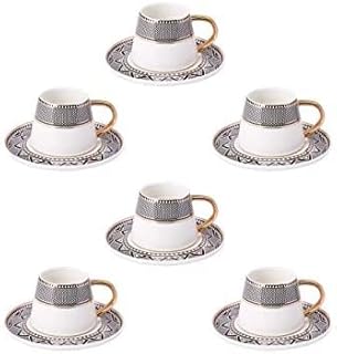 Alisveristime Ottomane Türkische griechische Arabische Espressotassen mit Untertasse und Deckel (6er-Set) (Lale) (Schwarz)