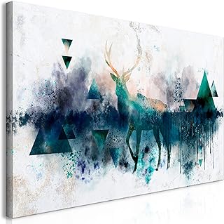 decomonkey Bilder Abstrakt 70x35 cm 1 Teilig Leinwandbilder Bild auf Leinwand Vlies Wandbild Kunstdruck Wanddeko Wand Wohnzimmer Wanddekoration Deko Geometrisch Tiere Hirsch