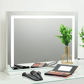 Category : Kitchenbemelux Schminkspiegel mit Licht Kosmetikspiegel mit Beleuchtung 3 Lichtfarben Dimmbarer Helligkeit und Touchschalter 360 Schwenkbar Großer Hollywood Spiegel Glänzender Aluminiumrahmen Tischspiegel