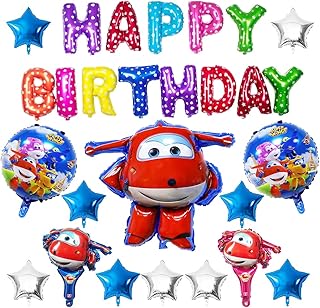 Super Wings Jett Flugzeug Folienballon, NALCY Super Wings Kindergeburtstag Deko, Super Wings Party Geburtstag, Luftballons Dekoration Set, Happy Birthday Deko-Luftballon Balloons (23 Stück)