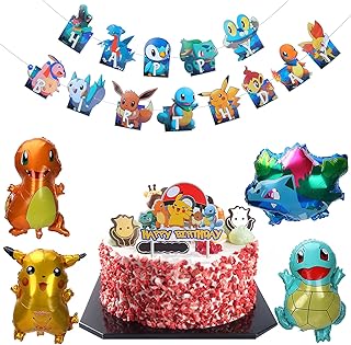 Aloces Pokemon Thema Party Dekoration,Pikachu Luftballon Party Deko Pikachu Luftballons Set Geburtstags Party Supplies Banner Cake Topper Balloon für Kinder Babyparty Geburtstag Party Dekorat