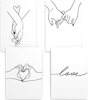 Papierschmiede Spruch-Poster 4er-Set in DIN A4 | Motiv: Love Hands | Typografie-Bilder Wohnzimmer Schlafzimmer ohne Rahmen