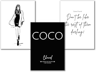 Coco Fashion Bild, A4 Spruch Poster Set, Beauty Bilder, Sprüche Bilder Schwarz-Weiß, Kunstdrucke Wohnzimmer, Schlafzimmer, Ankleide